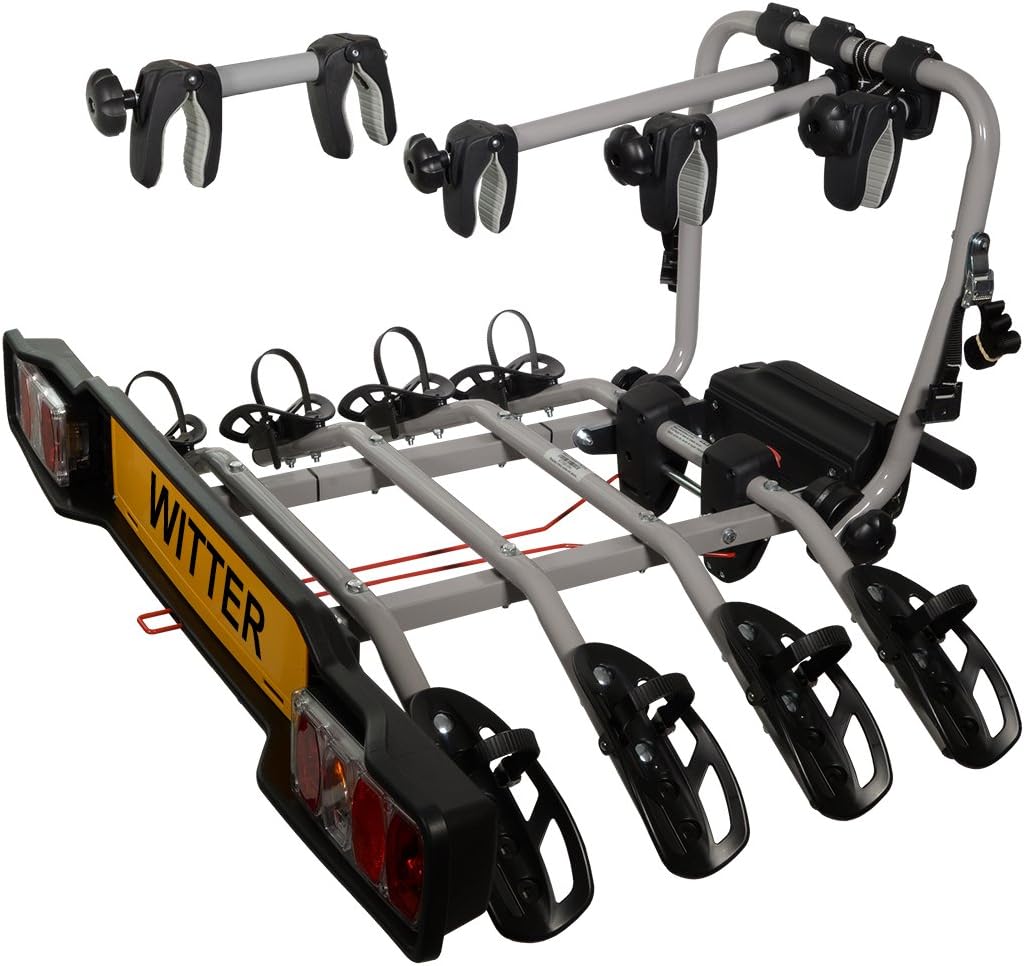 Witter ZX304: Spolehlivý nosič pro 4 jízdní kola Cenově dostupný, rodinný nosič kol Witter ZX304 představuje ideální řešení pro bezpečnou přepravu čtyř jízdních kol na tažném zařízení. Díky své robustní ocelové konstrukci a vysoké nosnosti je perfektním parťákem na vaše výlety. Hlavní výhody Praktický sklopný mechanismus: Umožňuje snadný přístup do zavazadlového prostoru auta, i když jsou kola právě upevněna na nosiči. Vysoká nosnost: S celkovým zatížením až 60 kg bezpečně přepravíte i těžší horská kola. Univerzální použití: Vhodný pro širokou škálu velikostí kol (12" až 29") a šířku pneumatik až 80 mm. Zabezpečení: Nosič je uzamykatelný k tažnému zařízení, což zvyšuje ochranu proti krádeži. Technické parametry Počet kol 4 Max. nosnost 60 kg Hmotnost nosiče 20,61 kg Materiál Ocel, plast Typ zástrčky 13 pin Max. rozvor kol 1200 mm Max. rychlost 130 km/h Upevnění kola Za rám a pneu (stahovací pásky) Upozornění: Tento model není určen pro přepravu elektrokol a vyžaduje počáteční montáž (není dodáván kompletně sestavený).